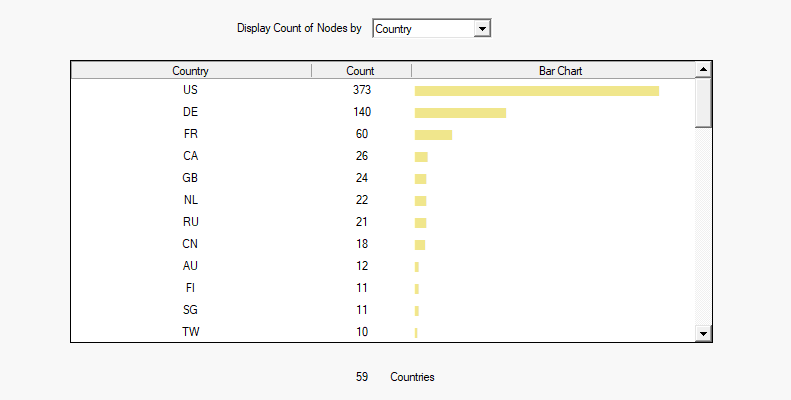 The statistics tab provides a breakdown of the nodes by a range of parameters.